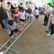 <目隠しトレイユ>目を閉じてロープを伝って歩きます。私たちは、普段、目から入ってくる情報に